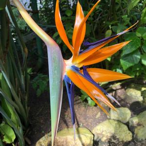 こんにちは😊 秋晴れ☀️ お嫁ちゃんと孫娘とお散歩•*¨*•.¸¸♬︎ 宮崎総合文化公園で出会った【ストレリチア(極楽鳥花)】今の時期に咲くんですね❁⃘*.゚