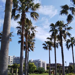 じいじ、パパ、子供たち三世代が通った小学校の植え込みのヤシの木🌴 初めて見上げた気がする~(º ロ º๑)