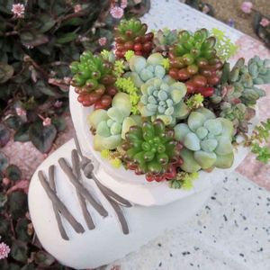 こんにちは😊 寒暖差が厳しいおすナ〜 その分、多肉は綺麗デスけどね 丸山さんのpots 鉢に bizarreマンスリーで買った苗と むっちゃんに貰った大好きな春萌で 寄植え〜😆