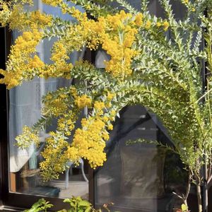 ミモザスワッグ束ねました 自家栽培のスペクタビリスと三角葉アカシアの2種類のミモザをたっぷり使っています 初めてのご購入ありがとうございました 気に入っていただけますように