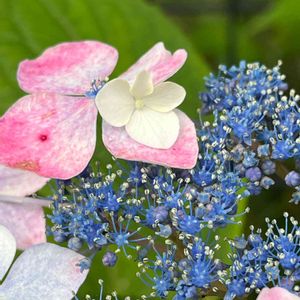 帰り道です〜 都立水元公園で出会ったガクアジサイ💕 ガクからもう一つ小さな白いガクが出ています❣️