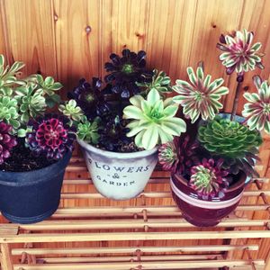 ウチのカナリヤ諸島勢。 アエオもそろそろ室内へ。 手前のはサボテン相談室で見つけた小さなアエオ交配種。 目覚めた様なのでモリモリさんのコロ鉢に植えかえました。 奥のサウンデルシーは比較用。 小ささがお分かり頂けますでしょうか?