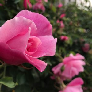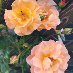 フラワーカーペットローズとヒラタアブ♡ 完全なるひかげですが、たくさん咲きそう