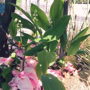 バラの根元をよく見ると、すずらんが増えていました♪