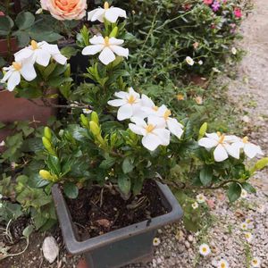 私のなんちゃって盆栽。 小さいクチナシ♡ 良い香り〜((´艸`*))