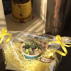 おはようございます😃 こちらは雨です☂️ 先日、多肉ちゃんの寄せ植え体験に初めて参加しました🍀 すごく楽しくて無心にセダムちゃんをチマチマ❣️ 改めてこれがチマチマかぁ〜って感動😍 上手に出来たかなぁ〜〜🥰