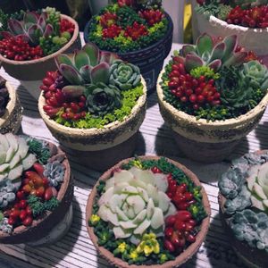 こんばんわ〜🤗🤗🤗 ハルさんです❤️ 寄せ植えを何個か作りました〜 2号鉢 2.5号鉢 3.0号鉢 などなど 初売り木工クラフト市にお持ちしまーす❤️🤗🤗🤗