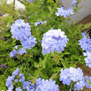 お! 今日は少し楽・・・でもないか😂 暑さの表現も底をつき、投稿するにもネタが尽き🤣 1 今日は、ブルーのルリマツリ🩵 白に比べると毎年花数が多いです。 2 ミニバラグリーンアイス🌹 元気が出てきたみたい🎵 気温の変化は植物の方が敏感ですね。