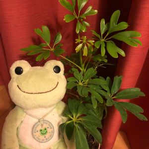 こんばんは。 シェフレラ レナータとカエルのピクルスです。 葉の先に切り込みが入っていて、ピクルスの手足みたい🐸 冬越しのため、そろそろ室内へ。 日付が変わってしまいましたが、6日はカエルの日🏷参加させてください。 No.496