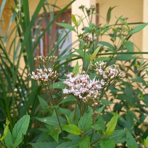 こんにちは🌿 今日のお花 フジバカマ🌿🤍🌿 イケメン君のお花屋さんの大きな寄せ植え鉢…昨年picです、先週はまだ蕾でした〜 ②白いユーパトリウム…畑に咲いていた西洋フジバカマ、早々と咲き早々枯れました😢 ③④ビンカMIKI…ちょっと涼しくなったから?開き具合がゆるくなった様な🤭 中心の赤が良く見えます🔴 ⑤ジュズサンゴ絣…可愛い❤♥ 猛暑でも強い子ですね〜🌿 気がつくと色んな鉢にちゃっかり同居しています〜可愛いから許します😆