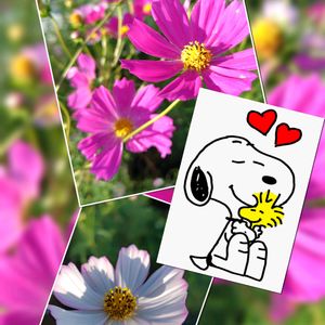 こんにちは😊 畑脇に咲いているコスモス(有志の方が育ててます)…今日は2日の木曜日 慌ててパシャリ📷️して来ました🌸 猛暑のせいか勢いないなぁと思っていたのに今日見たらいっぱい咲いていました👏👏 スヌーピーとコラボしました〜💗💗 雨も降ったから大根や白菜、葉物も順調な様子です😉 🏷️木曜日は桃色 🏷️毎月2日はスヌーピーの日