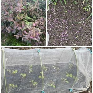 秋冬野菜の準備🥦🥬🧅 1枚目 ⬆️紫蘇の花と花絨毯 ⬇️今日植えた種からの白菜 2枚目 真ん中は玉ねぎ予定 右はブロッコリーとカリフラワー 左は今日植えた白菜 いずれも植えたら虫対策でネット掛けしてます 3枚目 夕方、インフルエンザワクチンを打った帰り、月が綺麗でした🌓 今月末は緑色のレモン彗星☄️が北極星方向に見える天体ショーがある 肉眼で見えるかどうかわからないけど楽しみの一つです☺️