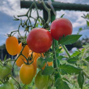 おはようございます☁️ 今日のお花 トマト🍅 今年は、猛暑の影響であまり収穫で きませんでしたが、 これは、過去の物です。 昔は、中玉の良いのが取れたのですが、最近は、あまり良くありません。 下段は、昨年ミニが取れた時🍅🍅🍅
