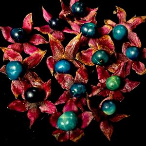 クサギ お花🌸のような雰囲気の不 思議な実です。💞 花期 ・7〜8月 花言葉 ・運命 ・治療 食用に利用され 岡山のクサギ菜飯。 一度食べてみたい。😋 食いしん坊の私です。