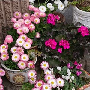 昨年、ローダンセマムさんの挿し木に初の試み❁⃘ 根が張り葉っぱも増えて今年たくさんの花芽がつきました〜 1番花です〜(๑ˇ∀︎ˇ๑)″°∮︎*.♪︎