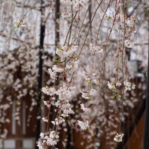 水が流れ落ちるように咲く枝垂れ桜 後ろに見えるクスノキの大木もとてもかっこいい♡