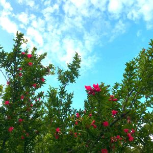 今日の花 ❁❀✿✾ 「ザクロ」♥️ の木🌳 いつも歩く川沿いから一筋入った所にある畑の脇に 立つザクロ🌳の木 花と実が生っています♥️ あの盆花のミソハギと同じ 「ミソハギ科」なのですね❣️ 観賞用としても食用としても魅力的ですね😊💖 🏷雲仲間