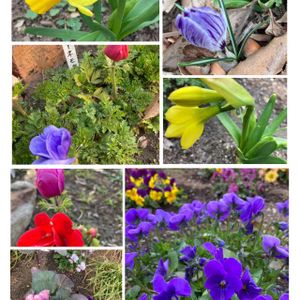 ラジオ体操の公園に仲間で植えた ビオラ達の今 ❁❀✿✾ 11月に「コニファー」 「葉牡丹」「ビオラ」と 花壇に植えた時はほんの小さかった株が(左下)…冬の北風ビュービュー🍃🌀🍃の時期、霜の降りた時期にも耐えて株が大分大きくなりました✨ お隣の花壇の「ジュリアン」達も虫にお花食べられながらもまた再生して来ています(o^^o)V あとは「コニファー」の寒さでやられ半分が茶色くなった所が緑に蘇ってくれたら嬉しいな〜❤︎" ハサミで✂️カットしない方が良いとか…手で摘んだ方が良いのでしょうか…🤔 周りの球根達も芽を吹き出し始め これから見るのが楽しみな季節になって来ましたね(^-^) ٩(๑❛ᴗ❛๑)۶ワクワク