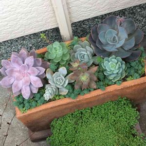 すごくたくさん寄せ植えしてみました。 名前がわかるのが49種類 わからないものが2、3種類あるので50種類は入っています。 少しベランダがスッキリしました。