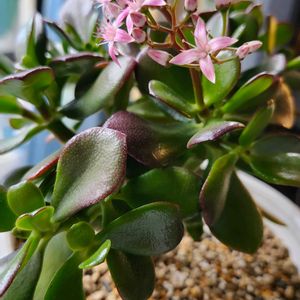 🌸桜花月🌸金のなる木💚今日のお花 ①2021年12/25にお迎えした当時 桜色の可愛いお花🌸いっぱいつけてました ②③今日2/17現在の桜花月さん 葉っぱが紅くなり、あれから3年… 花を咲かせてくれません 今年も蕾を持ってないから、咲いてくれないの? ④挿し木したら、大きくなった桜花月、葉っぱの縁が紅くなってきた こちらも花咲かないのよねー😭