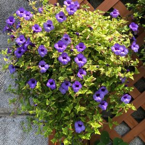 💚💜トレニア コンカラー斑入り💜💚 梅雨の間もずーと雨ざらしでしたが全然へっちゃらで いつもライムグリーン💚の葉っぱがとっても綺麗です😆