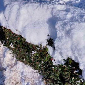 雪に埋もれた植物さん なにやら赤い実がなってます? 今日からようやく 通常の冬の気温へ戻りました💕 とはいえ例年よりやや低めの気温です