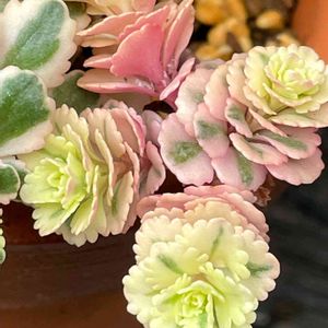 今日はみらいさんの🏷錦の日です🎵 アトランティスで参加させて頂きます😆 相変わらず、緑と白の中にピンクっぽいのとクリーム色も混ざってて可愛い~💕 だらーんとなってるし、✂️して増やしたいけど、なんだか失敗しような予感😅 いやいや今日は朝からアリッサム3鉢とも✂️してちょっとお疲れなのよ…( 💧¯₃¯ ) 元気だったら午後にやりましょうかね😅