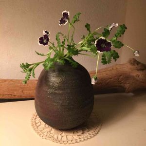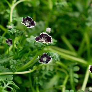 ネモフィラ ペニーブラック。 去年咲いて、タネを採っといた子。今年も花が見れて幸せ♪ 花は、同じ種類のネモフィラ イグニスブルーより ひとまわり小さいです。 去年もこのサイズだったので、たぶん、そういうものなのでしょう^^;