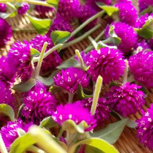 今日のお花 センニチコウ 赤紫色の花はドライフラワーの乾燥が進み青紫に見える。 白色も合わせてドライフラワーにします😉 以前に複数の花をコラージュして出したのには タグにセンニチコウと入れて無かった為 今夜再び。🎶😆 いつも見てくださりありがとうございます