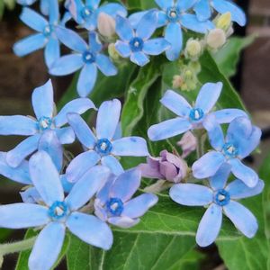 ブルースター お花は小さいですが、鮮やかな水色が緑の中で引き立ちます✨