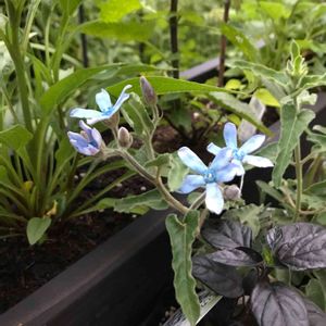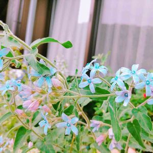 *ブルースター* 爽やかな、可愛い色に 癒されますね。丈 のびのびで咲いています。💙💚