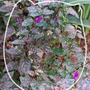 おはようございます👋 ヒポエステス (ソバカスソウ) 緑の葉っぱにピンクの斑点があり可愛い❤ 小さな花も付けました🙌 24℃