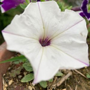 冬越ししたペチュニアの藤色小町が咲きました✨ 昨年は色が紫色でしたが白くなってます❣️