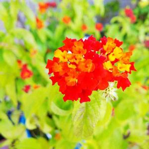 今日のお花🌼ランタナ (スーパーランタナ レインボーオレンジ) 色が変わるランタナ❤️ 一株で色々な色合いのお花が咲いて可愛いです💓💓