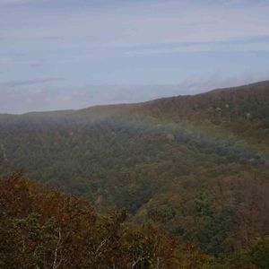 山の中に虹がかかってるのが分かるでしょうか? 虹を見下ろすのは初めての体験でした🌈 太かったなぁ(∩˘ω˘∩ )♡