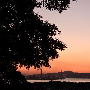 関門海峡の夕景。対岸の灯りは北九州工業地帯。