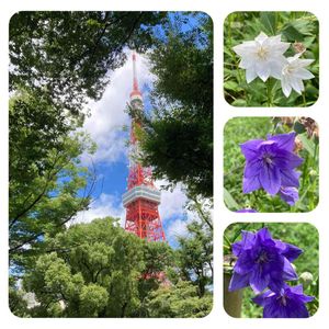 病院が終わって、いつものように芝公園と東京タワー🗼 【八重咲きの桔梗 紫と白】💜🤍💜🤍 綺麗に咲いていました(დ☣︎‿☣︎დ) 🏷『白い水曜日♡』に参加させて頂きます♪