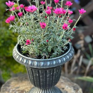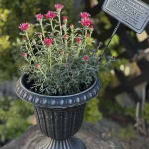 welcomeのお花 寄せ植え半分くらい載せましたがあとの半分はあまり綺麗に咲き揃っていないので、今日はローダンセマム マーキュリーのおひとり様植えです。 赤い蕾が好きなんです♥️