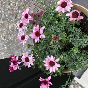 おはようございます🍀 ローダンセマム マーキュリー🩷🤎 前日 知らない街で 出会いました🎶 人目ぼれしました💕 可愛い色です♡ 以前も他の色は 育てたことがありますが 冬越しが出来ず…💦 今度はなんとか 頑張ります😃 お天気崩れそうです🌂 今日も佳き日に〜🍀😃