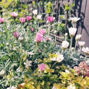 金魚草が1株枯れて穴が空いた所に ローダンセマムを植えました🙂 GS友さんの投稿のおかげです🥰 可愛くなったかな⁉️
