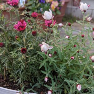 ローダンセマム ペーパーカスケード 気になっていた花 寄せ植えしました😊 耐寒性、宿根草 ヘリクリサム ペーパーカスケード キク科 ハナカンザシ属 原産地 オーストラリア