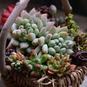 クラウンボール のかご寄せ。 せっかくムチムチかわいくなっていたのに、 雨続き&高温でジェリービーンになっていたので、 解体して乾いた土に植え替え。 一回り小さくなったけど、 なんとか救出できた。