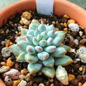 ★クラウンボール どうも♪ 今朝は起きてTVつけてビックリ😱 北海道で震度6強の地震とか出てるし💦 土砂災害の映像見て固まりました。。。 今もだいぶ被害報告が増えてきましたね😰 北海道のGSユーザーさん大丈夫でしょうか? 出来るだけ多くの人が無事でありますように…🙏 本日はクラウンボール♪ picは韓国エアーマジック産です✨ クラウンボールは ♀エケベリア デレンベルギー(静夜) ♂パキフィツム ルドゼウスキー(ベビーフィンガー) の交配種とされています。 エケベリアで販売されていたり、 GSでもエケベリアで紹介されている方が 沢山いらっしゃいますが、 ベビーフィンガーが交配されてる時点で もうエケベリアではありませんよ?😅 エケベリアとパキフィツムの交配なので 正しくはパキベリアです。 暑い時期は葉先がちょこんとオレンジですが、 冬姿はそれはもう、 おっぱいペンデンス以上の可愛さです🤩 そんな一番イイ感じの冬に、 写真撮り損ねていたのは内緒です😝笑 なお、クラウンボールの名は 国際的な有効名ではないので、 海外では他の品種名で流通していることも… 吉坂包装さんの王冠シリーズでも、 時々見かけることがありますが、 韓国苗のほうが価格も買いやすいですし、 流通量も多く入手しやすいです😊 ✨おさらい✨ ・クラウンボールはパキベリア ・静夜×ベビーフィンガーの交配種 -∴-∵-∴-∵-∴-∵-∴-∵-∴-∵-∴- xPachyveria 'Crown Ball' パキベリア 'クラウンボール' 和名 不明(情報募集中) 別名 不明(情報募集中) シノニム Echeveria 'Crown Ball'(誤り) xPachyveria sp.'Crown Ball'
