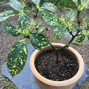 斑入りマサキ🍃 アレンジ で、添えの 葉っぱ🍃で 使った後、コップに ずっと入れて 楽しんでいたら、白い根っこ が 出てきたので、それを 小さな鉢に、植えて 3年が 経ちました !! あまりに 窮屈そう💦にしてたので やっと 植え替えてやりました🍃🍃🍃(^-^) 斑入りが 綺麗💕
