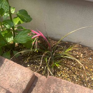 夕方に道路沿いの花壇にて、ピンク色のお花「ヨウラクツツアナナス」が気になり、パチリしました。📸🌺🌿😊😄🤗🌇