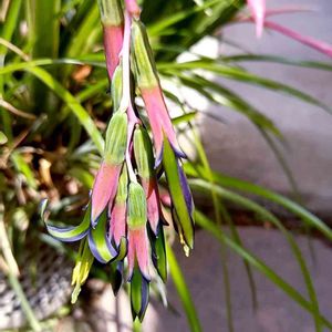 珍しい花をいただきました 「お坊さんの耳飾り」と言うそうです AIは、瓔珞ツツアナナスと言っています