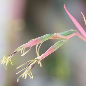 ヨウラクツツアナナス 昨年、お坊さんの耳飾りだと言っていただいたものです 温室に入れたらみるみる元気になって蕾がたくさん