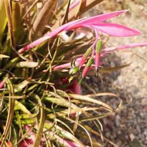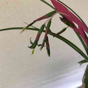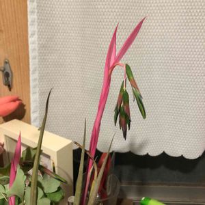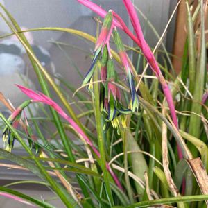 こんにちは ⛅️ 😊 💠 ヨウラクツツアナナス 💠 別名;女王の涙 パイナップル科ツツアナナス属 乙姫様の髪飾り✨✨ 里の姉から貰ってきて もう15年以上にはなるかなぁ……🤔 毎年 ずーっと咲いてくれてます💠🌸💕 ピンクとグリーンの色合いが好き❤️💚🥰