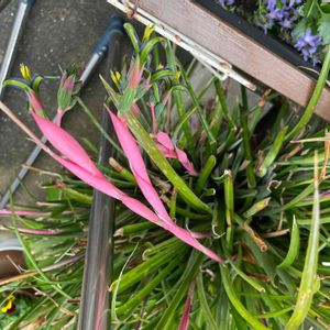 ヨウラクツツアナナス💛 例年よりIか月以上遅れて 3本に花を付けました🎶 カンザシの様な形が可愛い💕