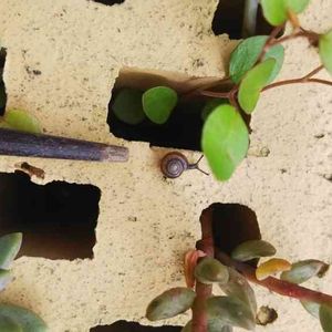 きゃー、是非とも見ていただきたい! と、思い慌てて撮りました(^^) 極ミニカタツムリ🐌‼️ 左から出ている棒が 挿し芽に愛用している普通の お箸です。 ちっちゃいでしょ♥️ あーかわゆい♥️
